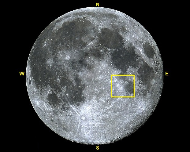 Coordenadas Selenográficas: LAT: 11° 24′ 00″ S, LON: 26° 24′ 00″ E.