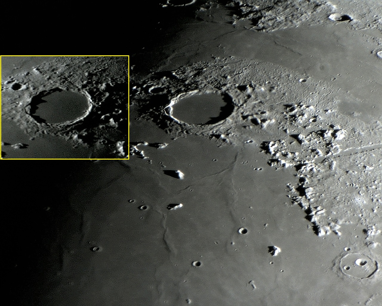 PLATO é uma das mais famosas, proeminentes e observadas crateras de impacto da Lua. Esta bela formação está localizada na margem norte do Mare IMBRIUM e sua região é considerada uma das mais lindas e fotografadas da superfície lunar.