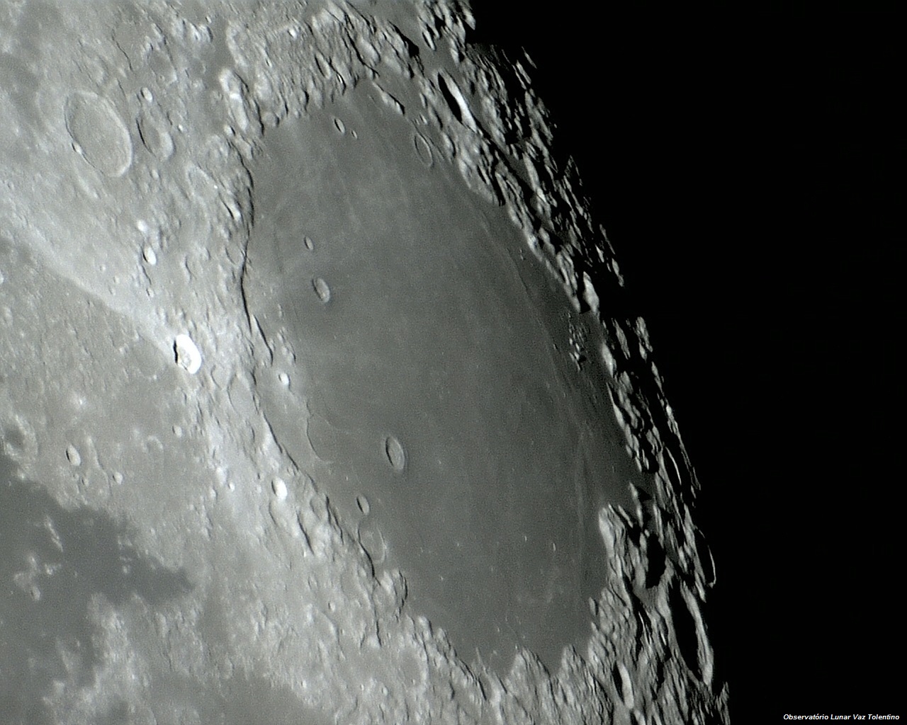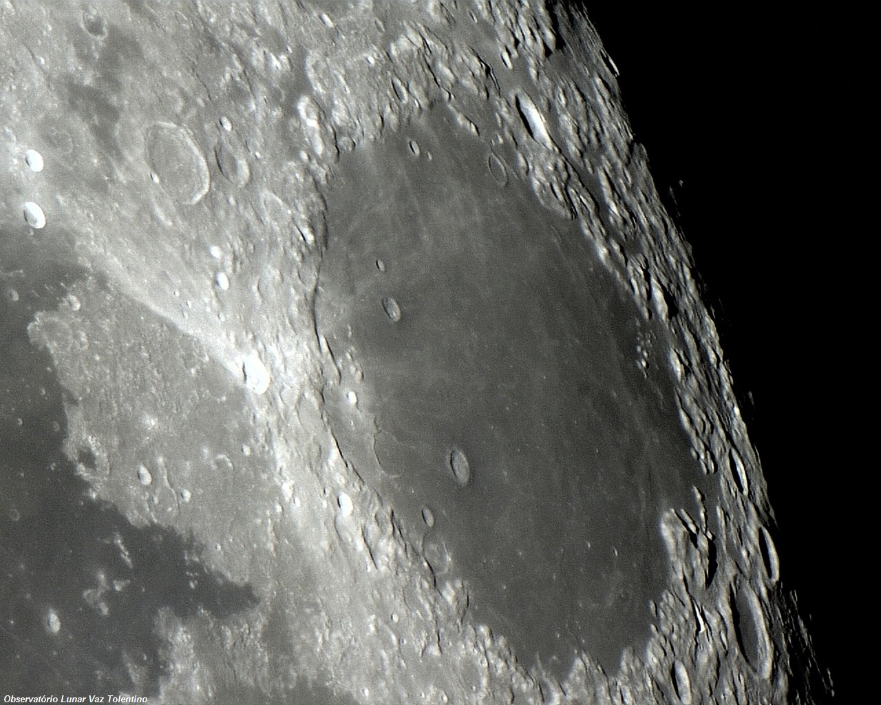 Foto: O belo e proeminente Mare CRISIUM, o único mar de lavas do lado visível da Lua que é isolado de todos os outros mares lunares, ou seja, suas lavas são cercadas por montanhas e terras altas. Foto executada por VTOL em 10 de março de 2012, 01:15:10.