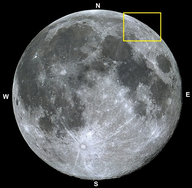 Imagem: Lua cheia mostrando a abrangência da foto enfocando a cratera MERCURIUS - VTOL.