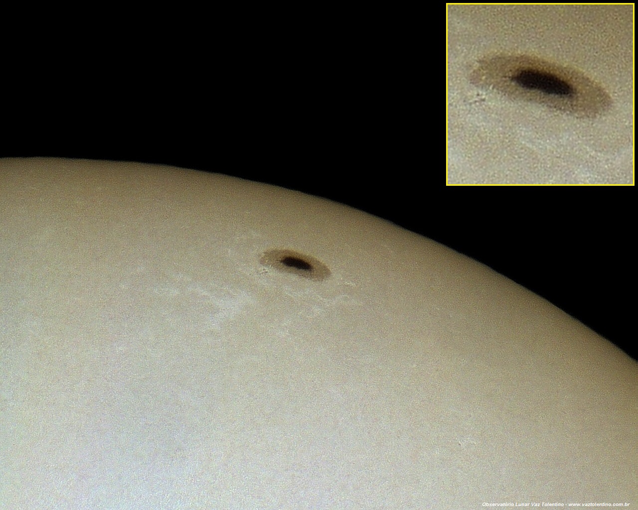 Imagem: A bela mancha solar AR 2546, fotografada com apenas 1 frame, em 18 de maio de 2016, 10:18:14 (13:18:14 UT).