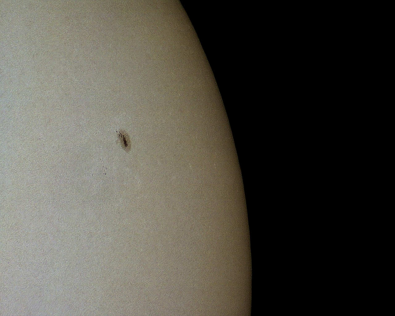 Imagem: A bela mancha solar AR 2546. Foto executada com apenas 1 frame em 22 de maio de 2016, 08:34:06.