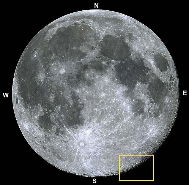 Coordenadas Selenográficas: LAT: 58° 42′ 00″ S, LON: 66° 00′ 00″ E.