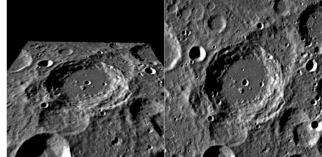 Imagem: Cratera Pontécoulant fotografada pela sonda lunar americana LRO da NASA.