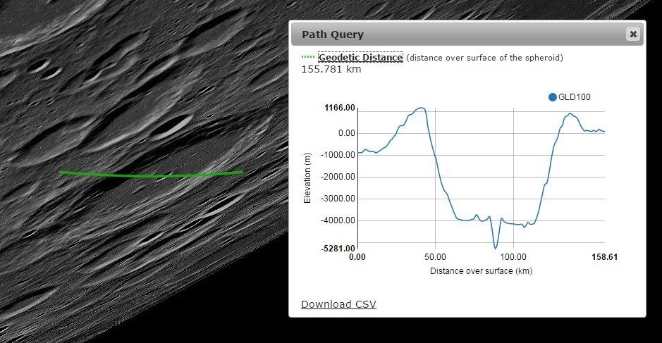 Imagem: O perfil altimétrico da cratera Pontécoulant - LRO QuickMap.
