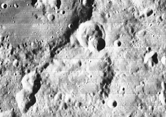 Imagem: A cratera NONIUS fotografada em voo orbital pela sonda americana Lunar Orbiter IV - NASA.