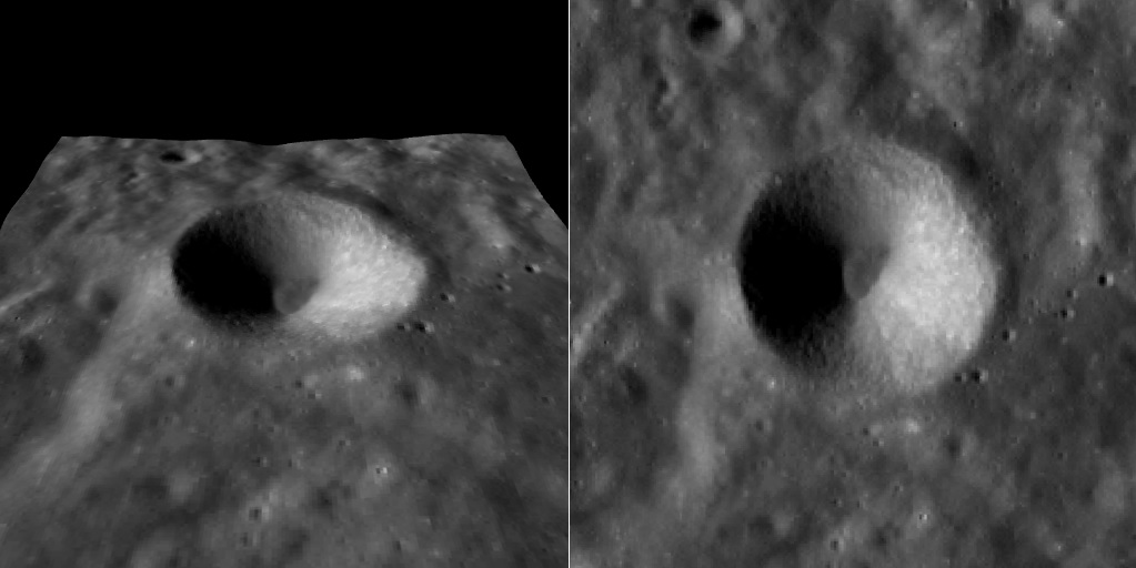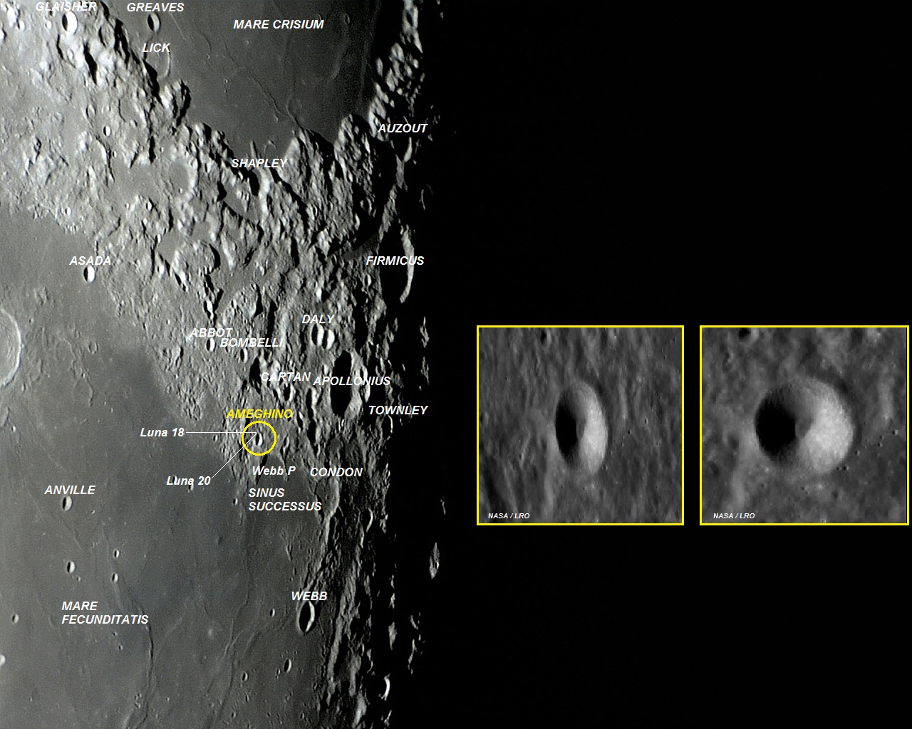 Composição: A cratera AMEGHINO fotografada em voo orbital pela sonda lunar robótica americana LRO da NASA.
