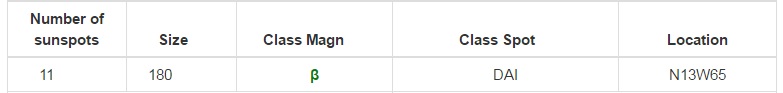 De acordo com o website Space Weather Live, hoje, 28 de maio de 2017, às 09:58:35 hora local ou 12:58:35 UT, a mancha solar AR2659 apresentava as seguintes características: