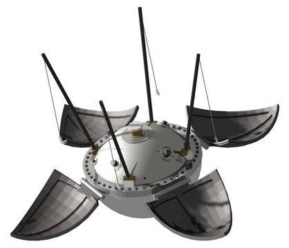 Imagem: A sonda lunar robótica soviética Luna 9 com suas 4 "pétalas".