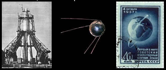 A União Soviética lançou a partir do cosmódromo de Baikonur (Kazaquistão) o satélite SPUTNIK 1, colocando-o em uma órbita elíptica baixa em torno da Terra, em 4 de Outubro de 1957. O pequeno satélite russo caracterizava-se como uma esfera de metal altamente polida (coberta por um escudo térmico feito de alumínio-magnésio-titânio) de 58 cm de diâmetro (montada com dois hemisférios de 2 mm de espessura, conectados por 36 parafusos), com massa de 83.6 kg, apresentando quatro longas antenas externas para transmitir pulsos de rádio. No interior da esfera estavam embarcados o dispositivo de suprimento de energia (baterias de prata-zinco), interruptor barométrico, sistema de regulagem de temperatura (interruptor de controle térmico e ventilador) e a unidade de rádio transmissor, que transmitia em 2 frequências distintas.