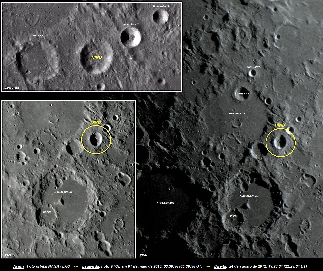A cratera HIND foi registrada fotograficamente em duas oportunidades pela equipe do Vaz Tolentino Observatório Lunar (VTOL), em 24 de agosto de 2012 e 01 de maio de 2013. As fotos foram executadas com apenas 1 frame cada.