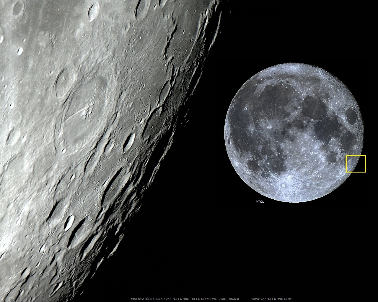 Foto: A enorme e proeminente cratera PETAVIUS e o grande canal que corta o seu piso interno. Foto executada com apenas 1 frame por VTOL em 10 de março de 2012, 00:50:48 (03:50:48 UT).