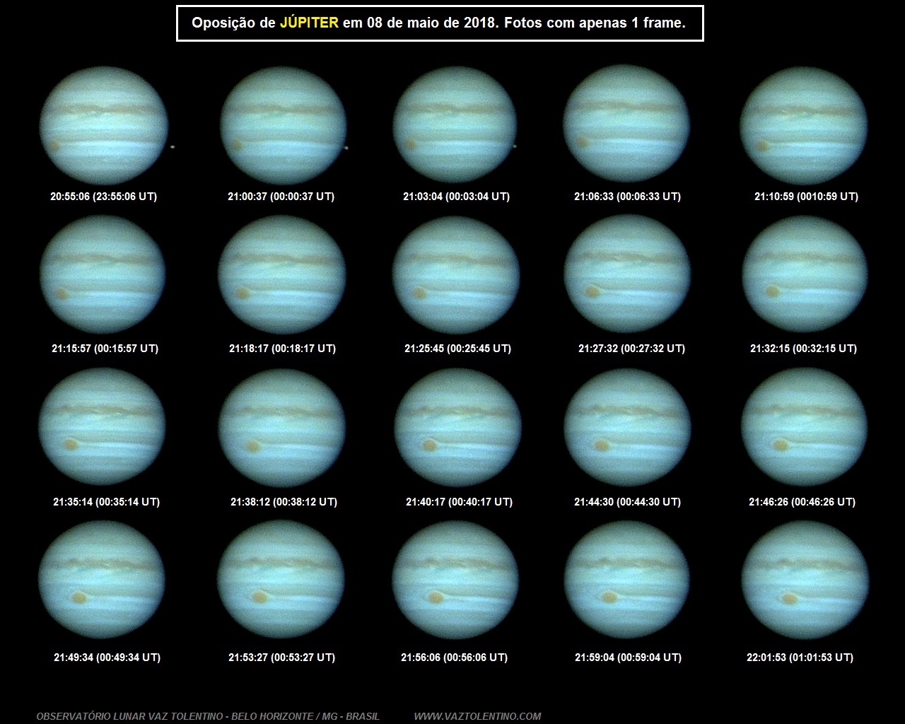 Oposição de JÚPITER em 08 de maio de 2018, às 21:30 LT (00:38 UT):