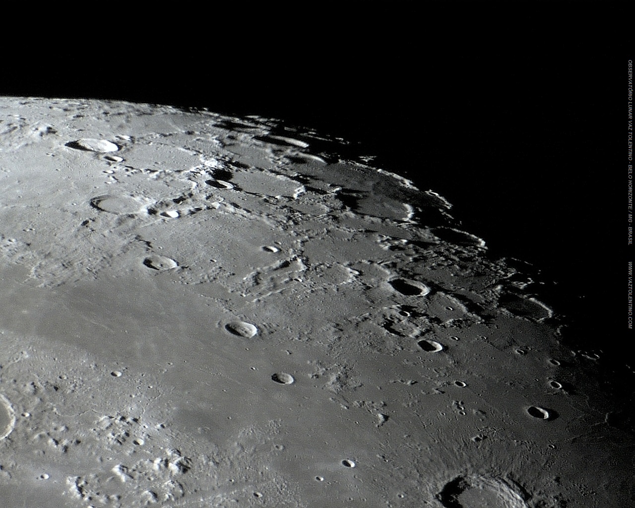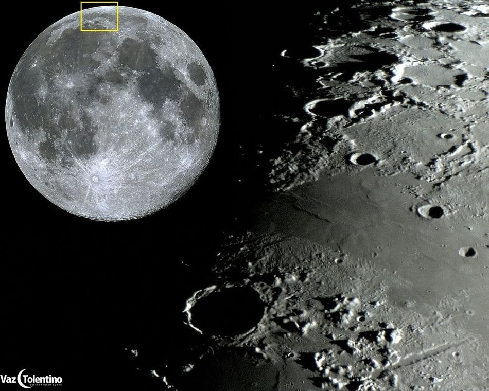 Imagem: A enorme cratera W BOND fotografada em voo orbital pela sonda lunar robótica americana LRO da NASA.
