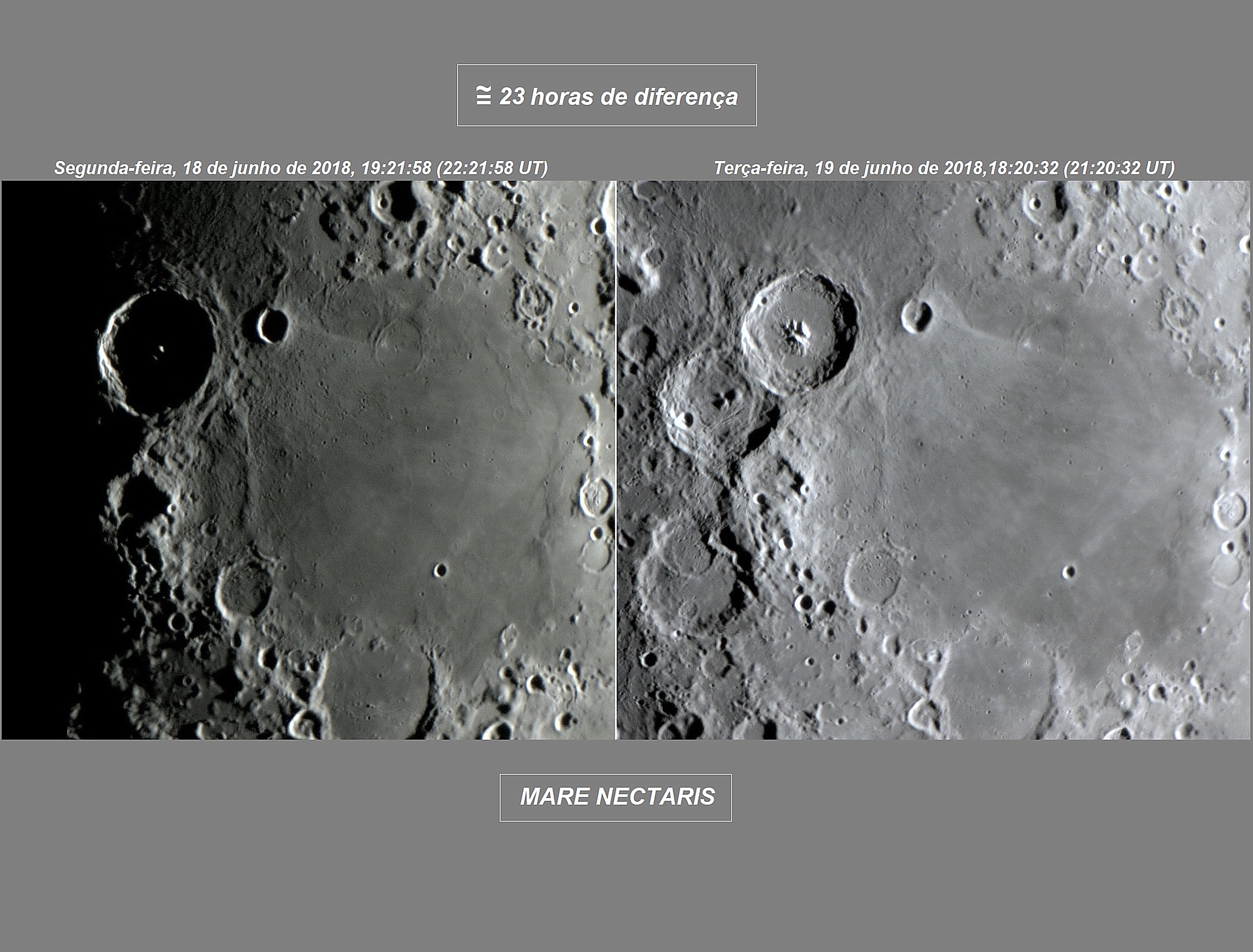 Não é monótono observar a Lua, pois ela sempre se apresenta diferente toda vez que olhamos para ela. Nosso satélite natural mostra uma constante alteração no aspecto visual de suas formações, devido aos seus movimentos que produzem mudanças de luz e sombras, na medida em que o Sol nasce e se põe por sobre seu detalhado relevo.