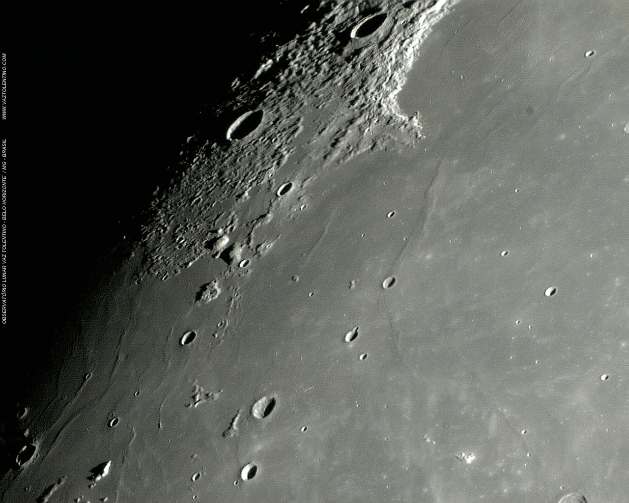 Foto: No detalhe, Mons GRUITHUISEN Gamma e MONS GRUITHUISEN Delta, que são antigos vulcões localizados nas terras altas da margem do Mare IMBRIUM, na fronteira com Oceanus PROCELLARUM, a sudoeste do Sinus IRIDUM. Foto executada por Ricardo José Vaz Tolentino em 04 de março de 2012, 21:40:48 - VTOL.