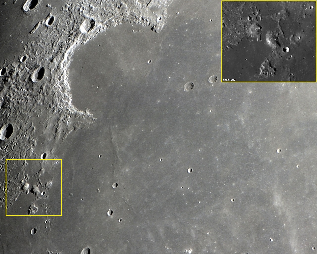 Imagens: Fotos obtidas de Mons GRUITHUISEN Gamma e MONS GRUITHUISEN Delta em voo orbital da sonda lunar robótica americana LRO da NASA.