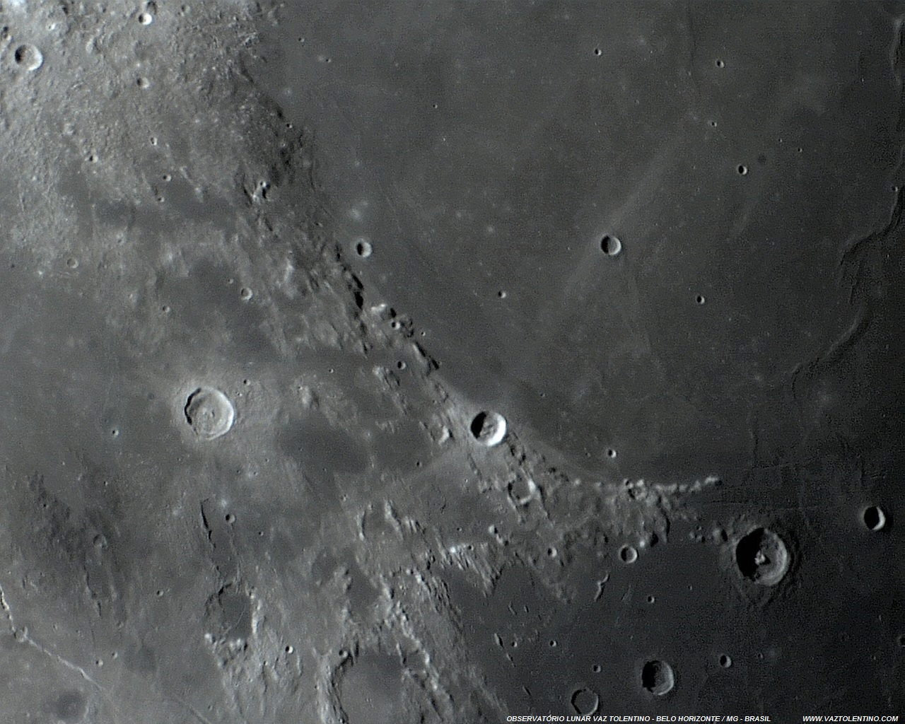 Imagem: A foto original da descoberta da provável cratera fantasma junto à borda nordeste da cratera MANILIUS. Nessa foto o Norte está para a direita. Foto executada por VTOL em 05 de fevereiro de 2010, às 04:26:12.