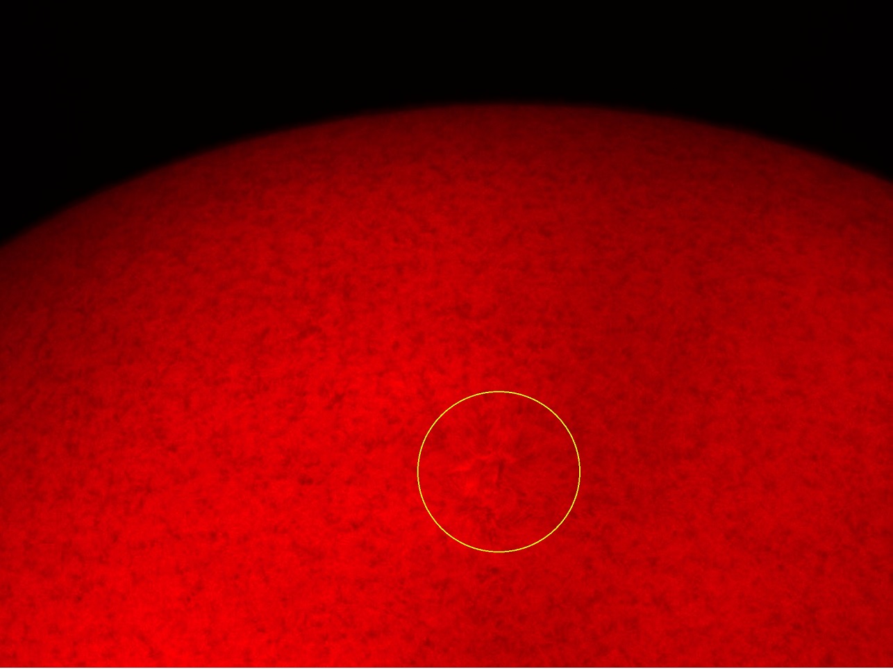 Foto: A pequena região ativa AR 2578 - Filtro Hydrogen-Alpha DayStar QUARK chromosphere, Telescópio Refrator Apocromático Tele Vue 85, Orion 0.5X Focal Reducer e Câmera Orion StarShoot Solar System Color Imaging Camera IV. -- 08 de março de 2020, 16:01:49 (19:01:49 UT).