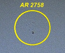 De acordo com o SpaceWeatherLive.com, a pequena região ativa AR 2758 possuía, em 08 de março de 2020 (15:42:14 hora local / 18:42:14 UT), as seguintes características: