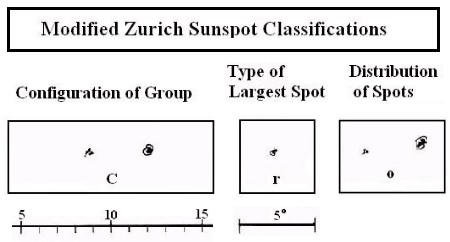 Classe da Mancha (de acordo com a "Modified Zurich Sunspot Classifications"): CRO