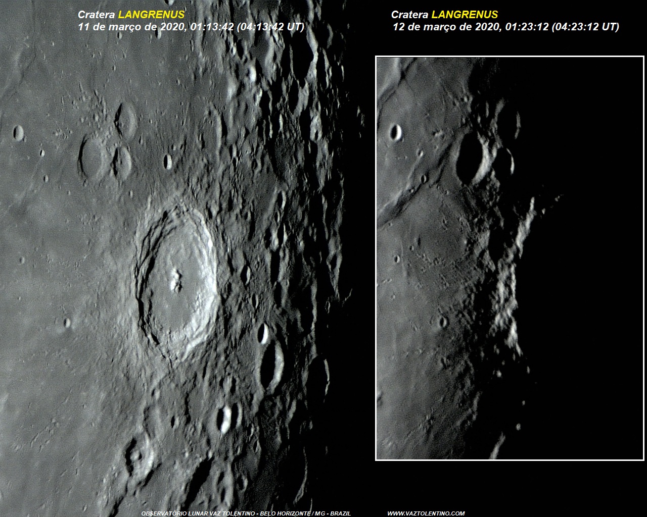 Cratera LANGRENUS: 24 horas de diferença - 11 e 12 de Mar/2020