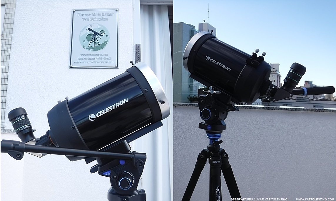 O Telescópio Schimidt-Cassegrain CELESTRON C5 utilizado para a observação da região ativa AR 2760, equipado com filtro luz branca (fotosfera) Baader.