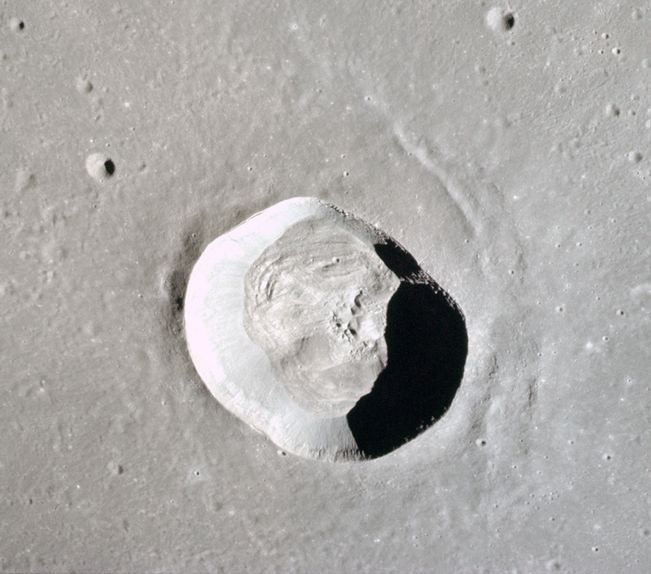 Imagem: A cratera DAWES fotografada em voo orbital pela tripulação da missão APOLLO 17 - NASA.