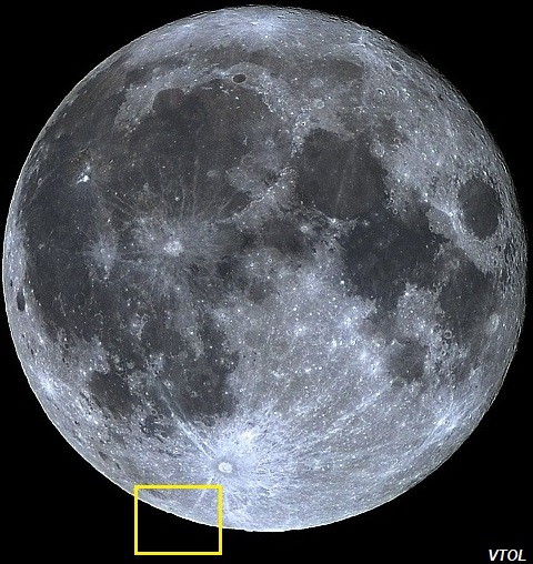 Coordenadas Selenográficas: LAT: 49° 30′ 00″ S, LON: 21° 42′ 00″ W;