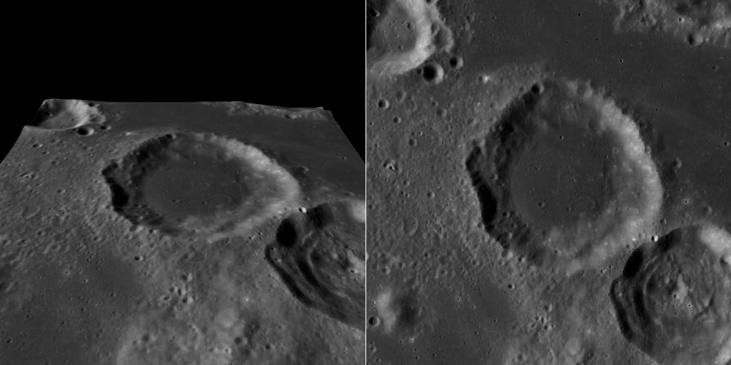 Composição: A cratera MAGELHAENS fotografada em voo orbital pela sonda lunar robótica americana LRO da NASA.