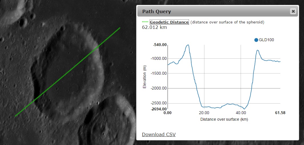 Imagem: O perfil altimétrico SW - NE da cratera MAGELHAENS - NASA / LRO QuickMap.
