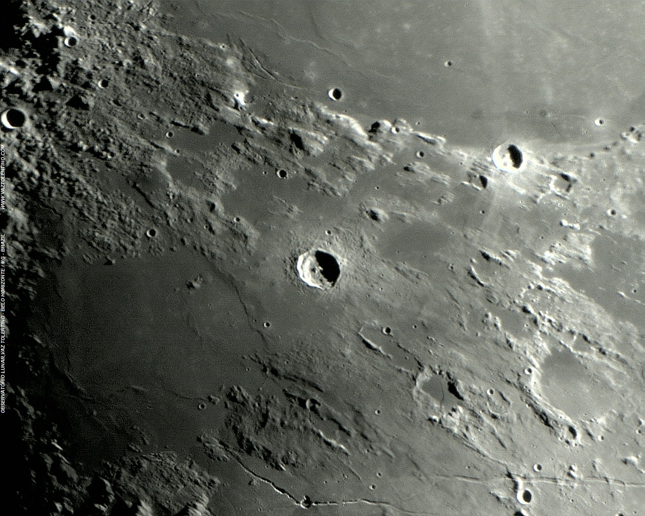 - Caracteriza-se como um dos pontos mais escuros (baixo albedo) da superfície lunar visível, cuja tonalidade sombria torna fácil a localização e o reconhecimento dessa diferenciada cratera.