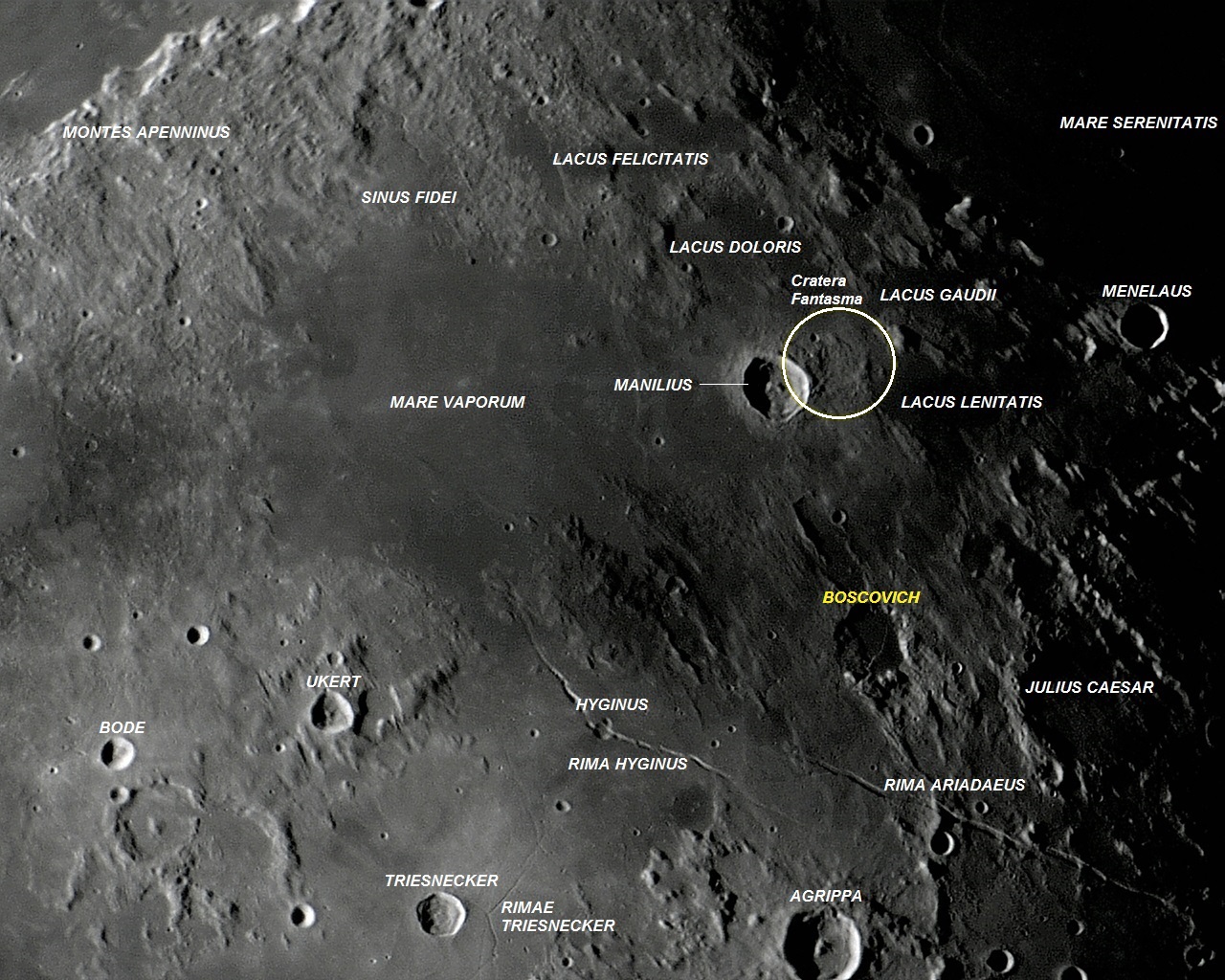BOSCOVICH é uma antiga e desgastada cratera de impacto lunar, dotada de borda erodida, quebrada, irregular e mal definida. BOSCOVICH possui 46 Km de diâmetro médio e 1,76 Km de profundidade. Essa cratera está localizada nas coordenadas selenográficas LAT: 09° 48′ 00″ N e LON: 011° 06′ 00″ E.