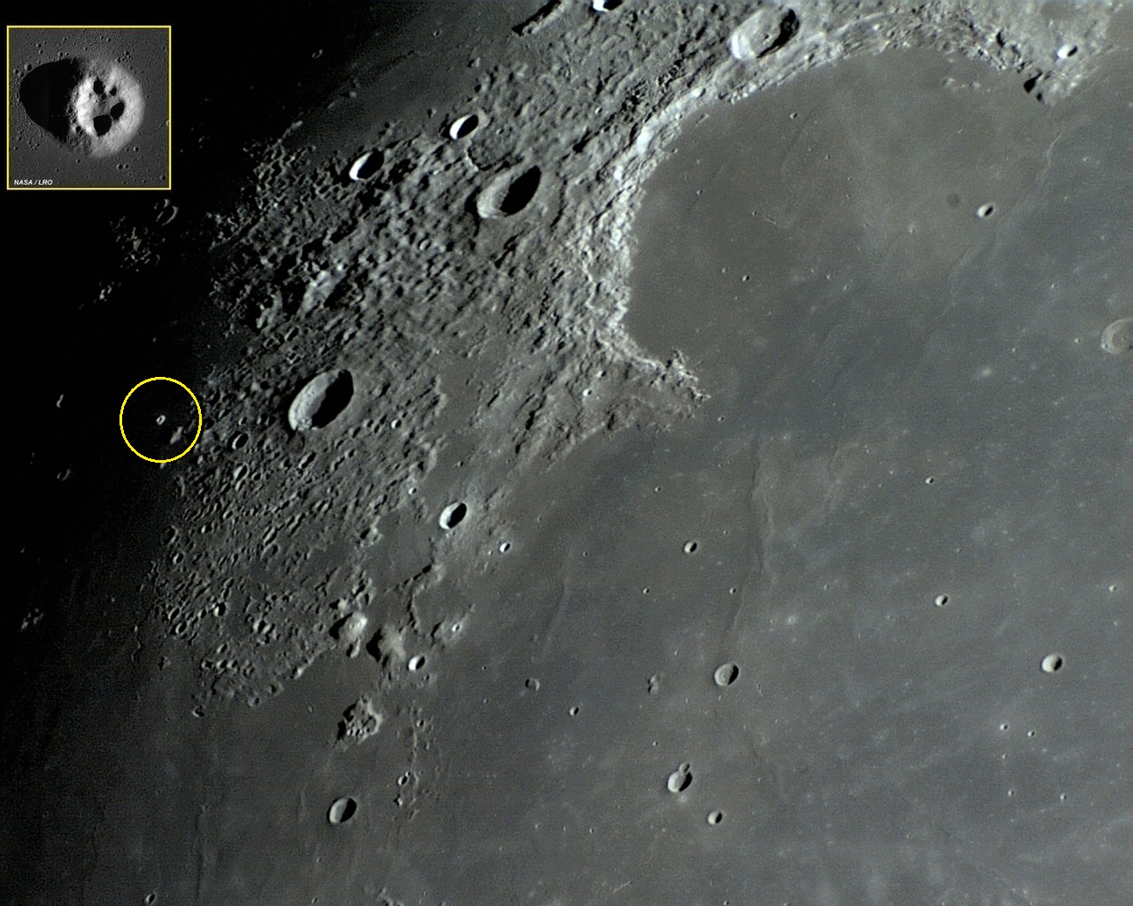 Coordenadas selenográficas: LAT: 40° 48′ 00″ N, LON: 58° 06′ 00″ W;