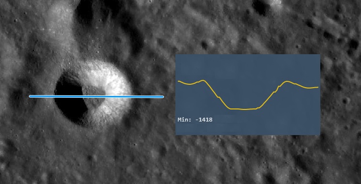 Composição: O perfil altimétrico W - E da cratera ARATOS - NASA / LRO QuickMap.