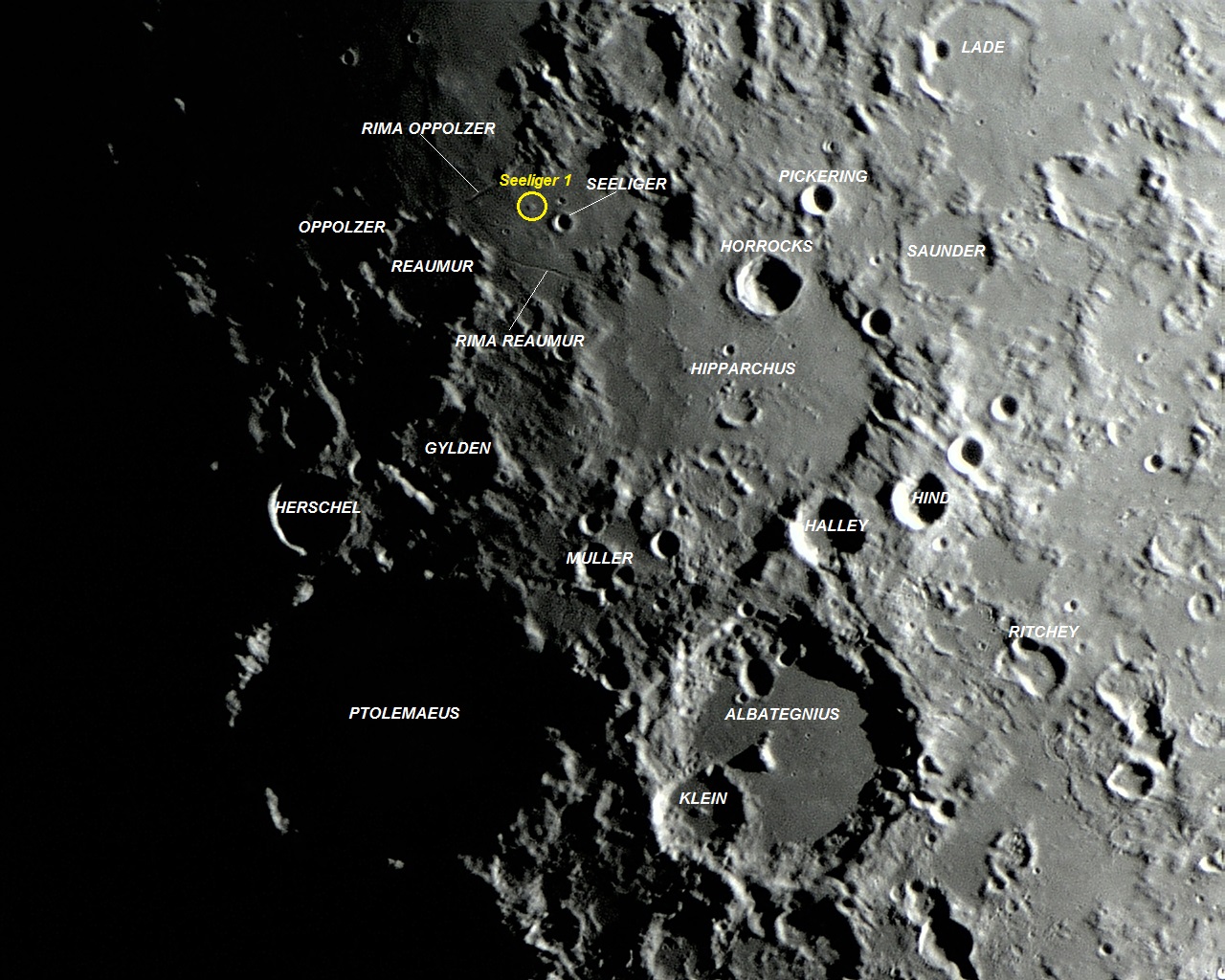 Imagem: Lua cheia mostrando a abrangência da foto enfocando Seeliger 1 - VTOL.