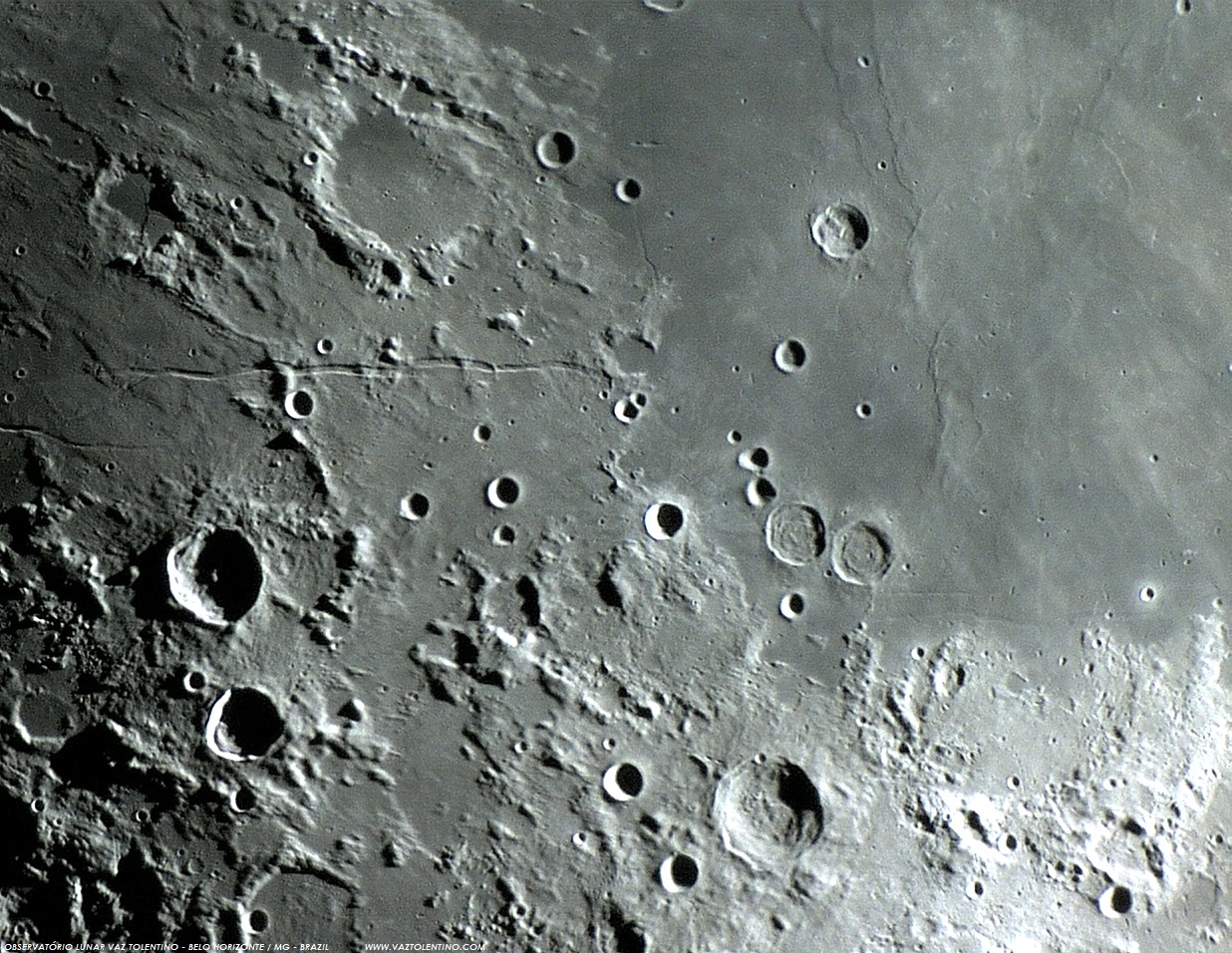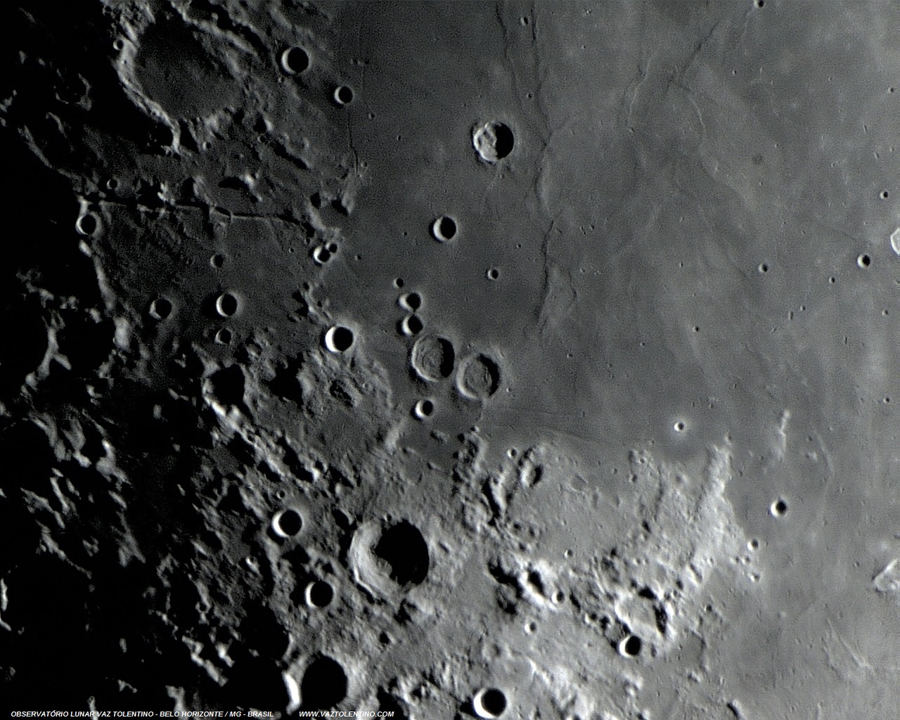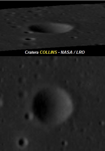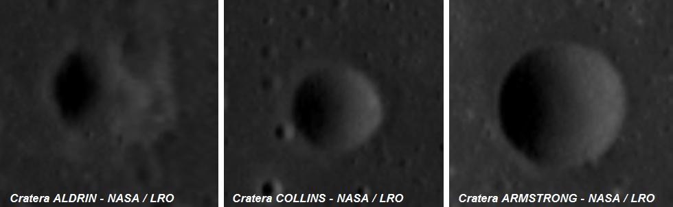 Crateras ALDRIN, COLLINS e ARMSTRONG.