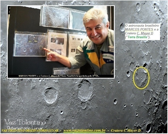 Durante o 17º EREA (Encontro Regional de Ensino de Astronomia), realizado em maio de 2011 em Belo Horizonte, o VTOL (Vaz Tolentino Observatório Lunar), expôs algumas fotografias da Lua. Nessa oportunidade, o astronauta brasileiro Marcos Pontes ficou muito admirado por saber da existência de uma cratera lunar com o formato do mapa do Brasil. O astronauta elogiou muito nossa foto e disse que nunca ouviu falar sobre a existência do “mapa do Brasil na Lua”. Trata-se da Cratera C. Mayer D, fotografada pelo VTOL em fevereiro/2011, carinhosamente “rebatizada” por nossa equipe como “Terra Brasilis”.