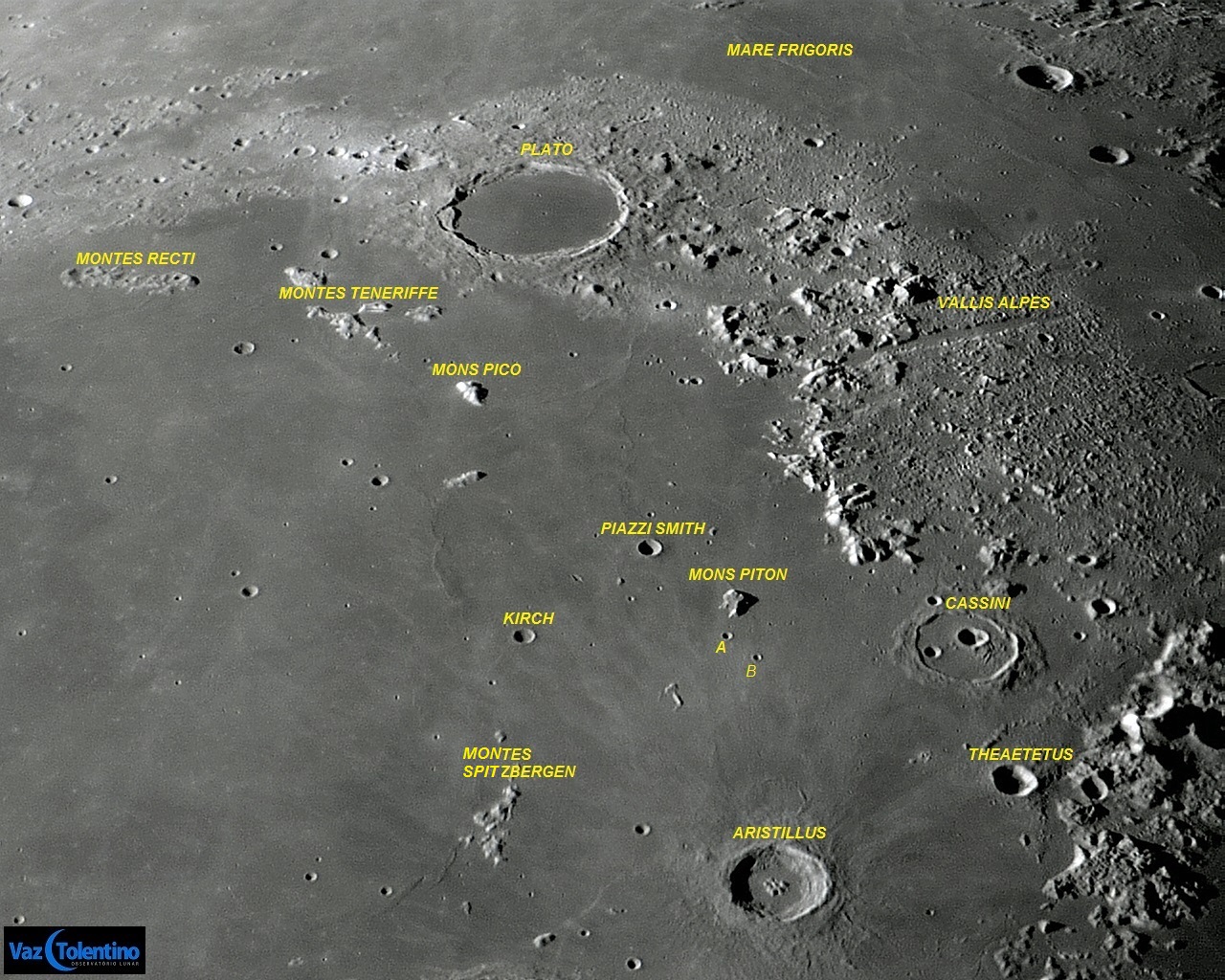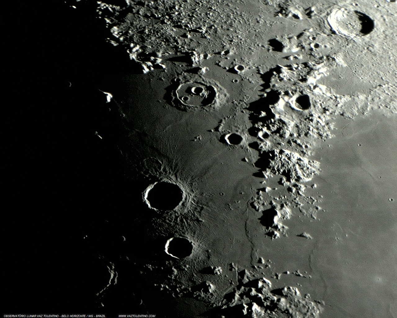Foto: A cratera CASSINI (no destaque) e a bela paisagem da região leste e nordeste do Mare IMBRIUM. Foto executada por VTOL em 01 de maio de 2013, 03:30:38 (06:30:38 UT).