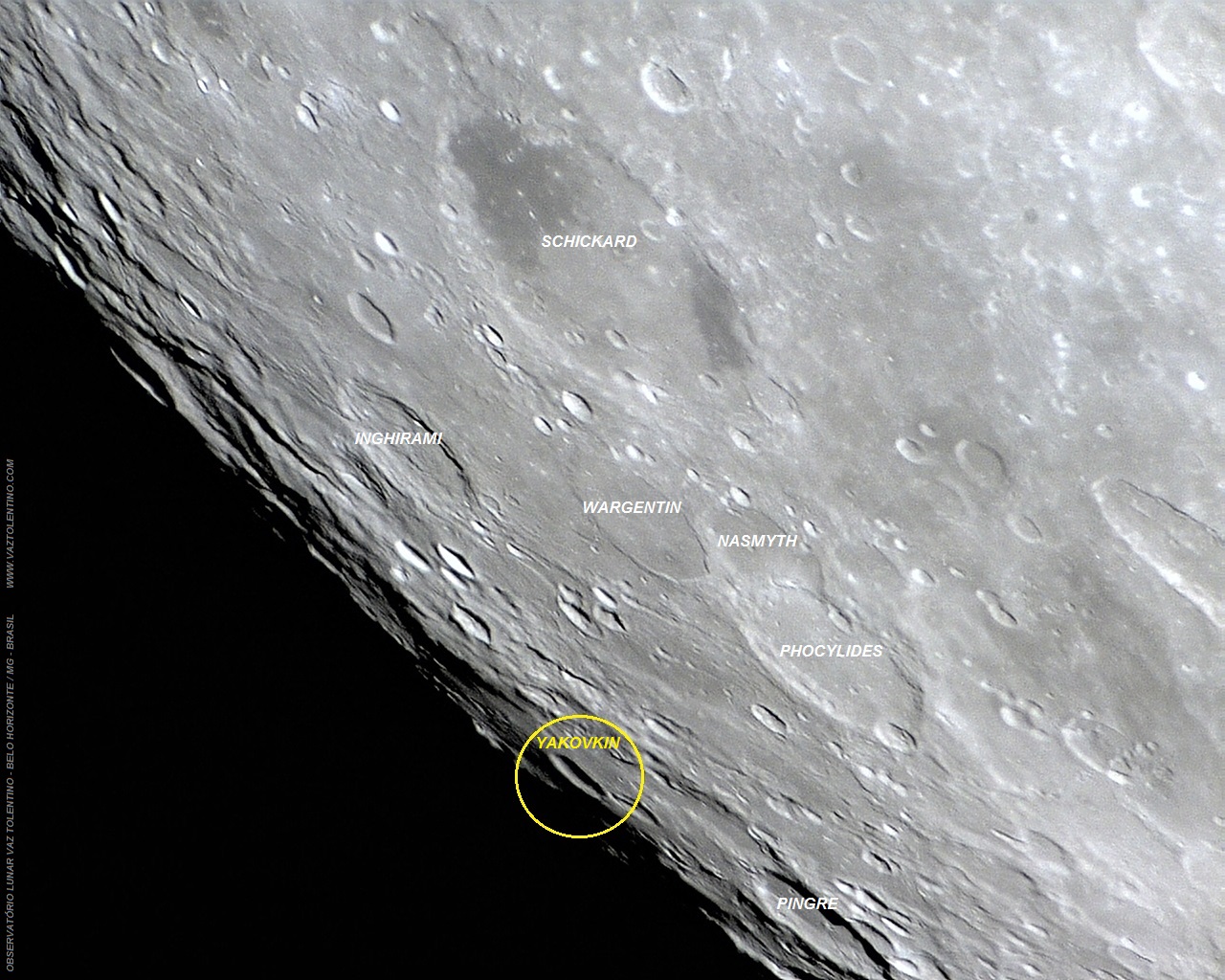 A cratera de impacto YAKOVKIN caracteriza-se como uma formação relativamente circular, apresentando 37 Km de diâmetro e 1,64 Km de profundidade. YAKOVKIN está posicionada junto ao limbo sudoeste lunar, na zona de librações, nas coordenadas selenográficas LAT: 54° 30′ 00″ S e LON: 078° 48′ 00″ W. Por causa de sua localização junto ao limbo, YAKOVKIN apresenta uma aparência alongada. Assim, sua observação com qualidade a partir da Terra, torna-se dificil.