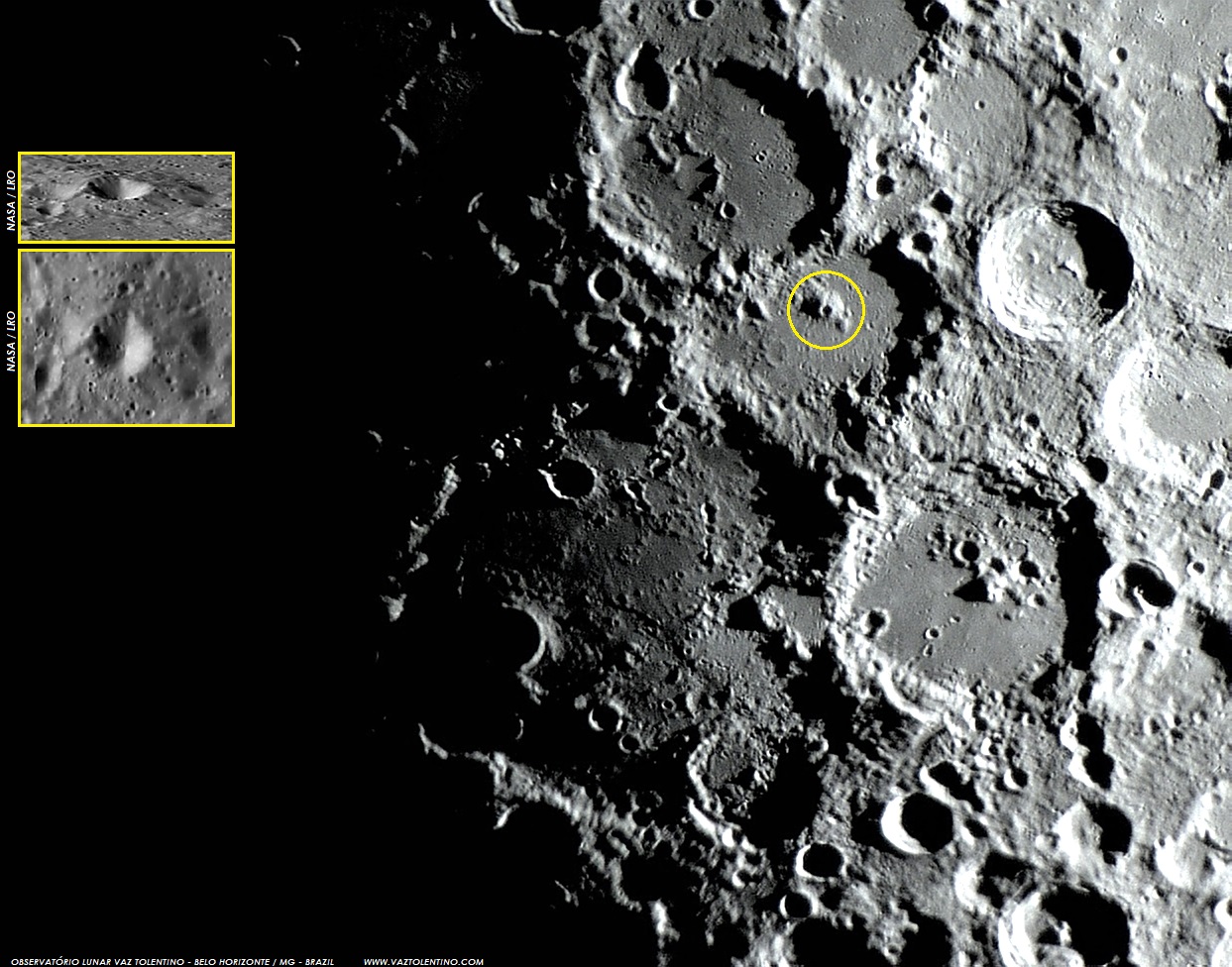 Foto: A imagem apresenta a velha e desgastada Cratera REGIOMONTANUS, sua montanha central e a pequena Cratera de impacto Regiomontanus A no topo da montanha. Foto por VTOL.