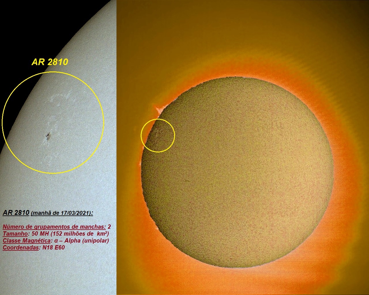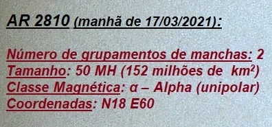 Aspecto do SOL na manhã de 17 de março de 2021 (Grupamento de Manchas Solares AR 2810).