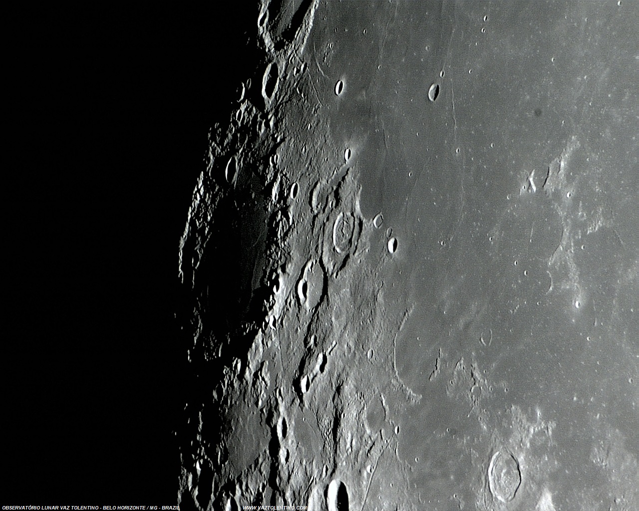 As regiões dos limbos da Lua oferecem um desafio para o observador, porque todos os detalhes são distorcidos por encurtamento. A grande, escura e destacada cratera GRIMALDI localiza-se próxima do limbo lunar oeste. Por causa disso, sua forma real que é circular, apresenta-se como elíptica a partir do nosso ponto de vista da Terra.
