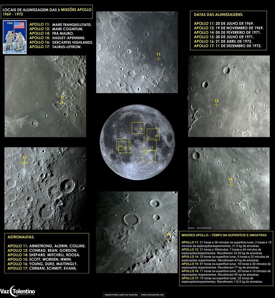 MISSÕES APOLLO – DATA DAS ALUNISSAGENS E REGIÕES LUNARES: