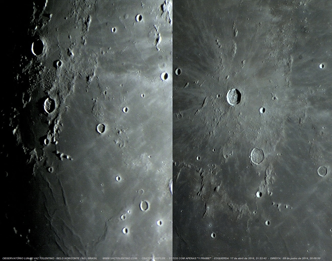A cratera KEPLER se destaca quando o Sol posiciona-se no alto do céu lunar, porque o impacto relativamente recente, que escavou esta bela cratera, ejetou para o exterior muito material fresco com altíssima velocidade, para todas as direções, criando numerosos caminhamentos de raios brilhantes em longas distâncias. Com o tempo a radiação do Sol vai escurecer o sistema de raios brilhantes, mas demorará muito antes que isso aconteça. Os raios cobrem os mares de lava ao seu redor e estendem-se por mais de 300 Km, atravessando raios de outras crateras. Pouco mudou em KEPLER e também no seu entorno após 1 bilhão de anos.