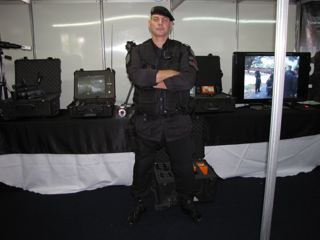 Exposição de equipamentos opercaionais do GATE, tendo à frente o Sargento Sergio.