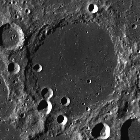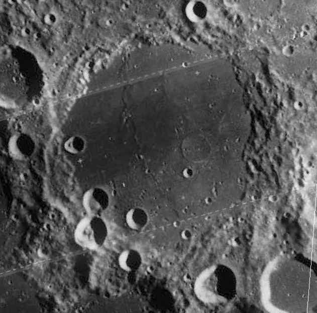 Imagem: A grande cratera LYOT fotografada em voo orbital pela sonda lunar robótica americana Lunar Orbiter IV da NASA.
