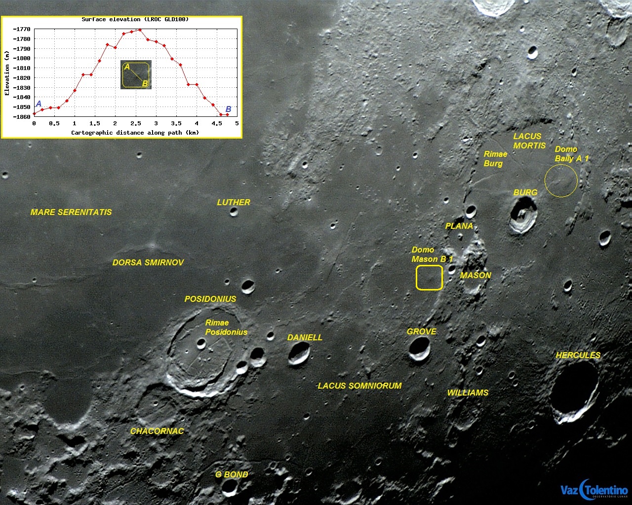 Imagem: O Domo Vulcânico Mason B 1 fotografado em voo orbital pela sonda lunar robótica LRO da NASA.