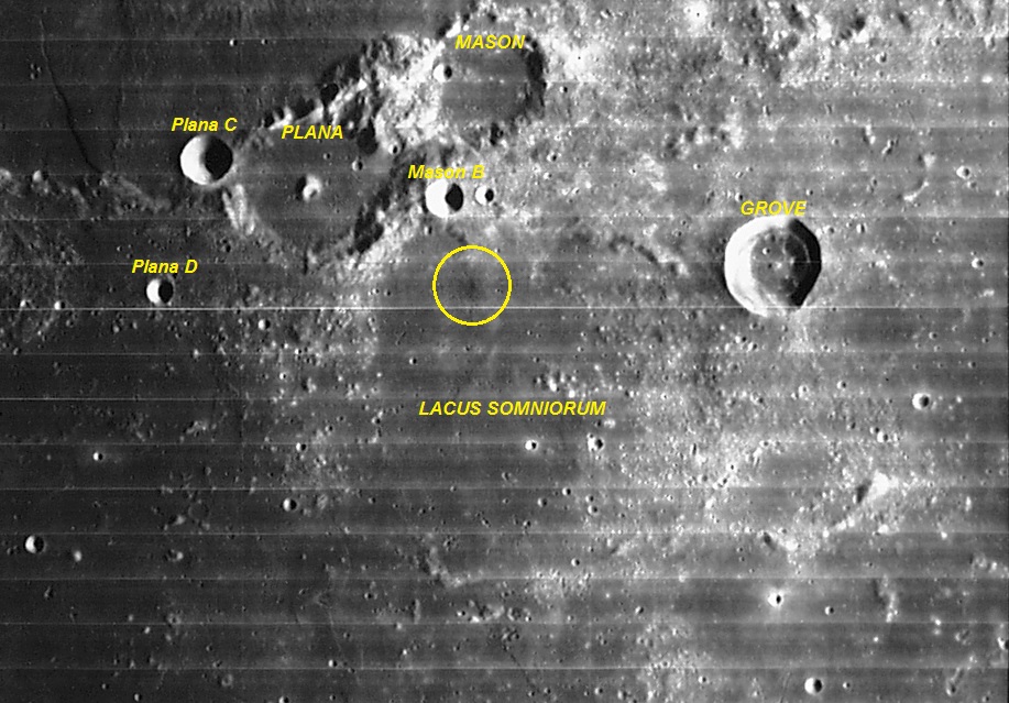 Imagem: A região do Domo Vulcânico Mason B 1, fotografada em voo orbital pela sonda robótica americana Lunar Orbiter 4 - NASA.