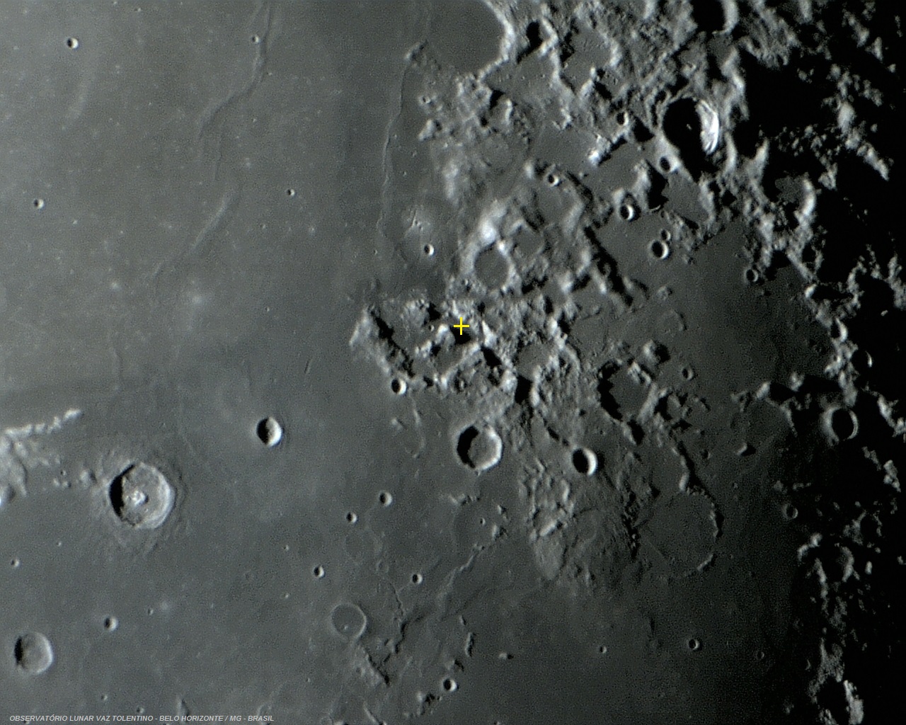 Foto: O local de alunissagem da última missão tripulada na Lua (coordenadas selenográficas LAT: 20° 11′ 26.88″ N, LON: 30° 46′ 18.05″ E). Foto executada por VTOL em 10 de abril de 2012, 04:08:06.